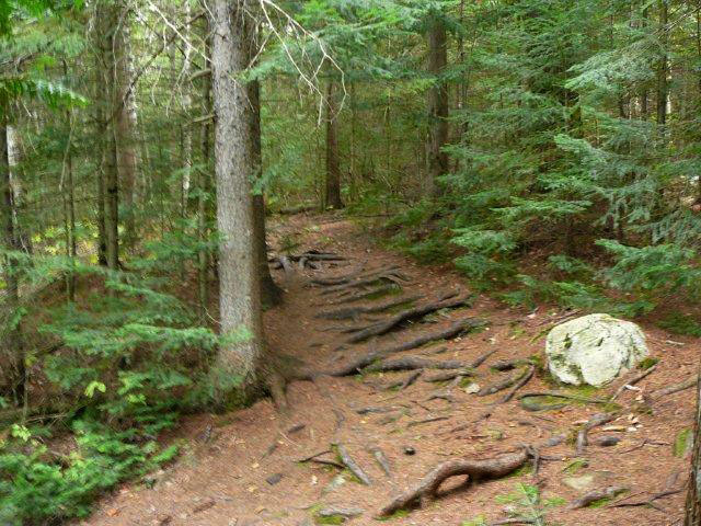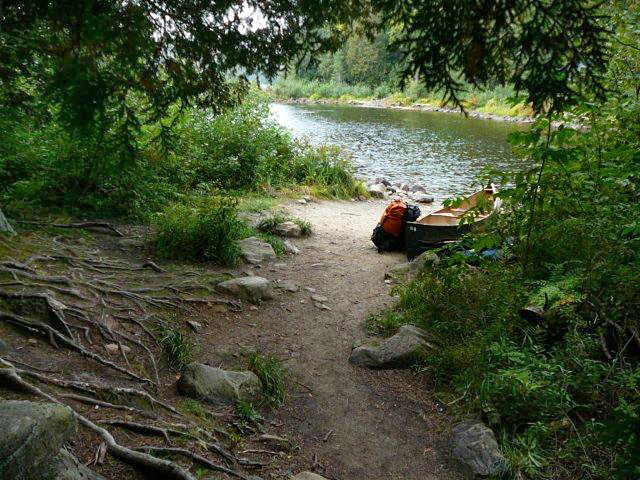 Portage Trail General description: Well travelled, short, level trail, with minimum elevation change. Topographical impediments to travelling: An easy rise over the first 20+m at either end of the trail. Trail is equal mix of smooth path and rocky/rooty sections. Areas susceptible to impact by periods of rain or beaver flooding: None evident. Rooty part of portage ...![]() Landing at Kitty Lake Co-ordinates of location: N45 39.515 W78 08.285 Topography of under-water approach: : Gravel and some larger rocks in calf deep water leading to smooth shore takeout. (NB: In times of high water, the current can be strong even close to shore.) Impediments to disembarking from and/or unloading a canoe: Opening at landing is large enough for just one canoe. (NB: Get canoe pulled ashore quickly, so others can land safely.) Topography of the ascending grade: Smooth, gradual rise. Impediments to moving gear to portage trail: Not much room at landing and trail begins right away with barely enough room for 2 canoes to pass. Put-in at Kitty Lake ...![]() ![]() Thanks to Jeffrey McMurtrie of Jeff'sMap for supplying the base-layer map component by Creative Commons licensing. Submitted by Chris Taylor, October 2013 .. visited, September 2013 |