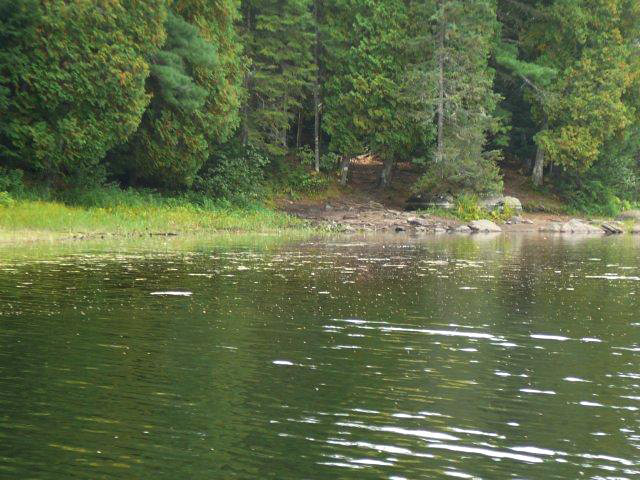 Landing at Farm Lake Co-ordinates of location (optional): N45 39.560 W78 08.240 Topography of under-water approach: Sand and silt. (NB: In times of high water, the landing can be quite 'mucky'.) Impediments to disembarking from and/or unloading a canoe: None, there a couple of natural slips. Topography of the ascending grade: Slight grade, climbing on rocks and roots. Impediments to moving gear to portage trail: Plenty of space for gear. Takeout at Farm Lake ...