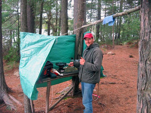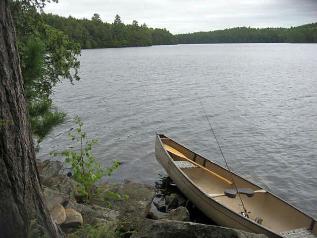 Landing Canoe hauled up on the rocks ... Topography of under-water approach: Deep water to inclined jagged rock shoreline. Impediments to disembarking from and/or unloading a canoe: The shoreline is a bit rough, best to exit the canoe while floating then pull the canoe up on to the shore to beach it. Topography leading to tent sites: Campsite area is fairly flat away from the shoreline. Campsite Regular or low-maintenance: Regular Size of open area: average to small "Kitchen nook" ... Extent of tree cover: good Degree of levelness: flat Number of tent sites: 1 to 2 tents North exposure: The site faces north/west, with some exposure to the wind. East exposure: trees. South exposure: trees. West exposure: exposed to west winds. Looking across the lake ... General description: Great site, with good fishing from shore. Overall accessibility: Tough area to exit the canoe. Note: The lake is a long trek in from Opeonge access point. ![]() Thanks to Jeffrey McMurtrie of Jeff'sMap for supplying the base-layer map component by Creative Commons licensing. Submitted by Frank Sands (Sterrr) .. Submission March 14, 2009 |