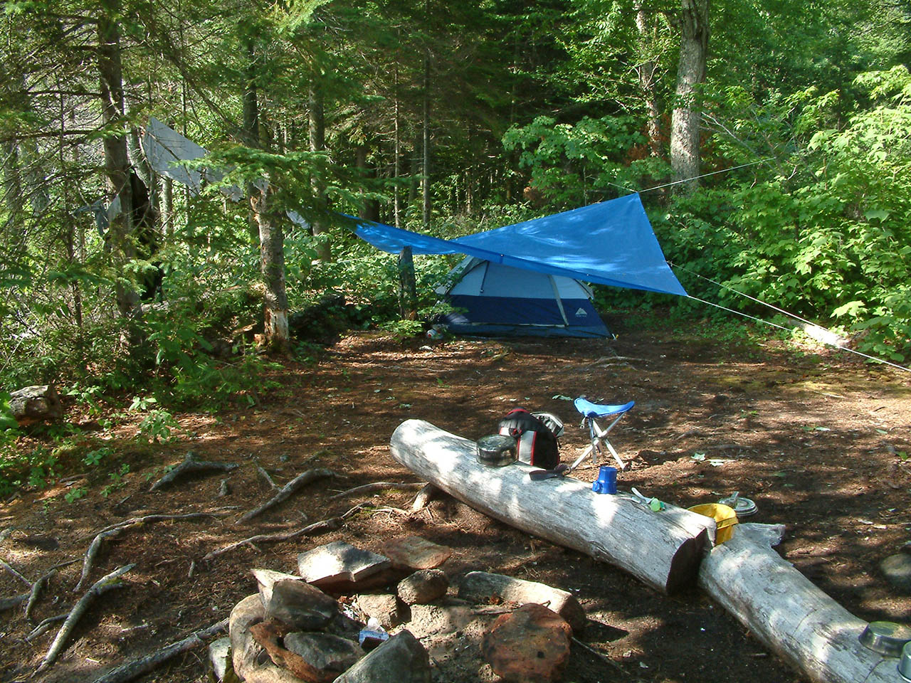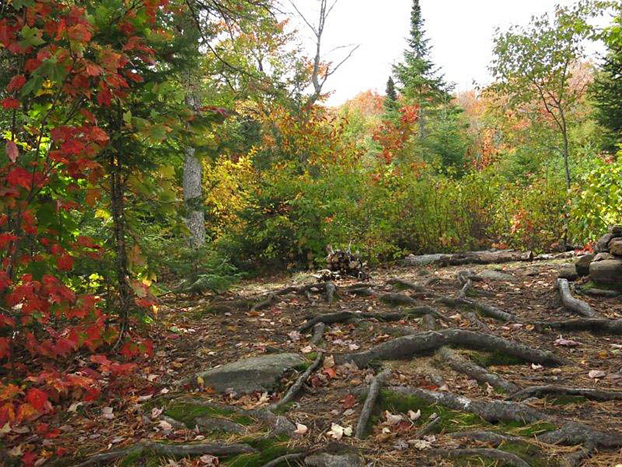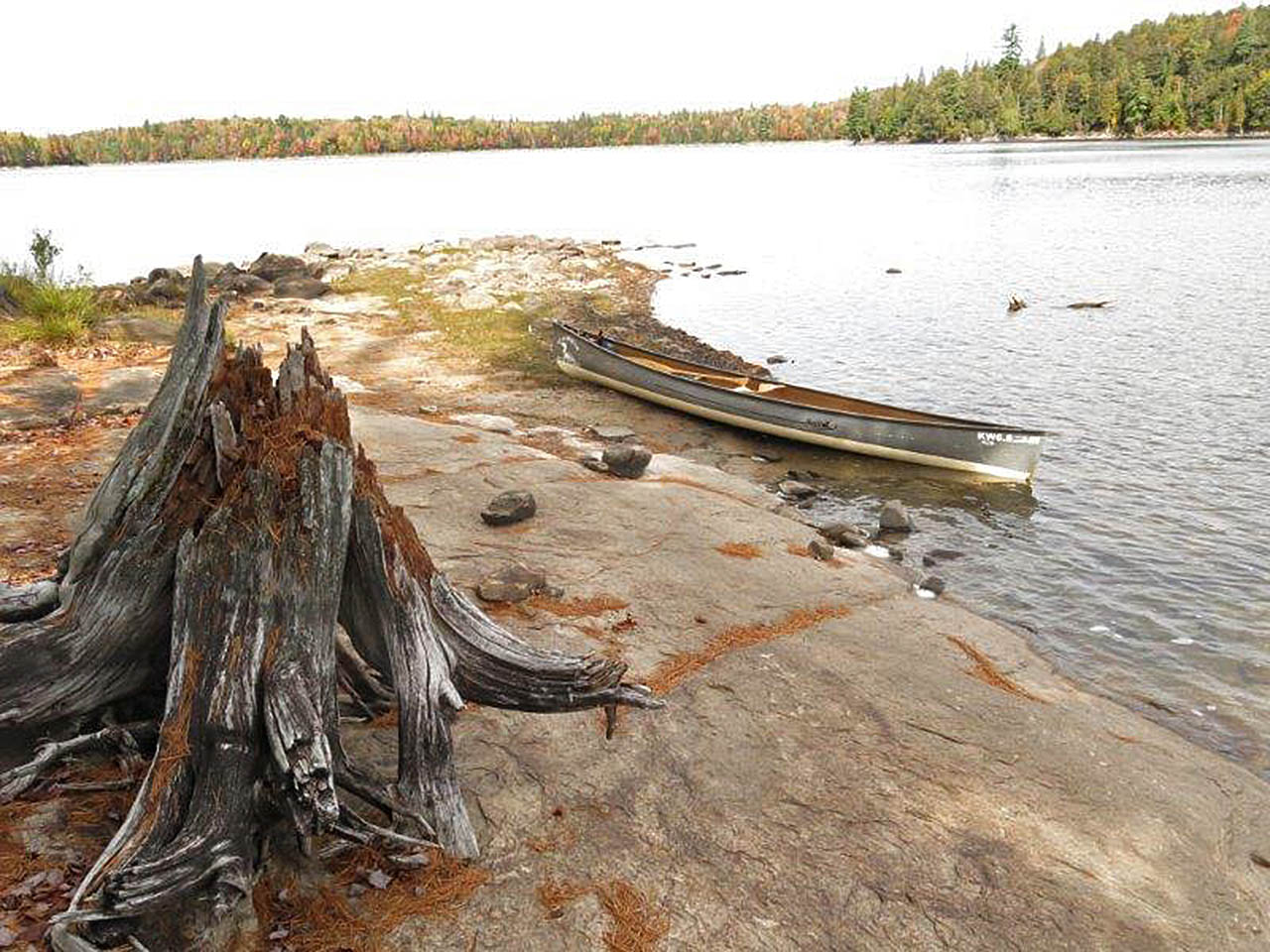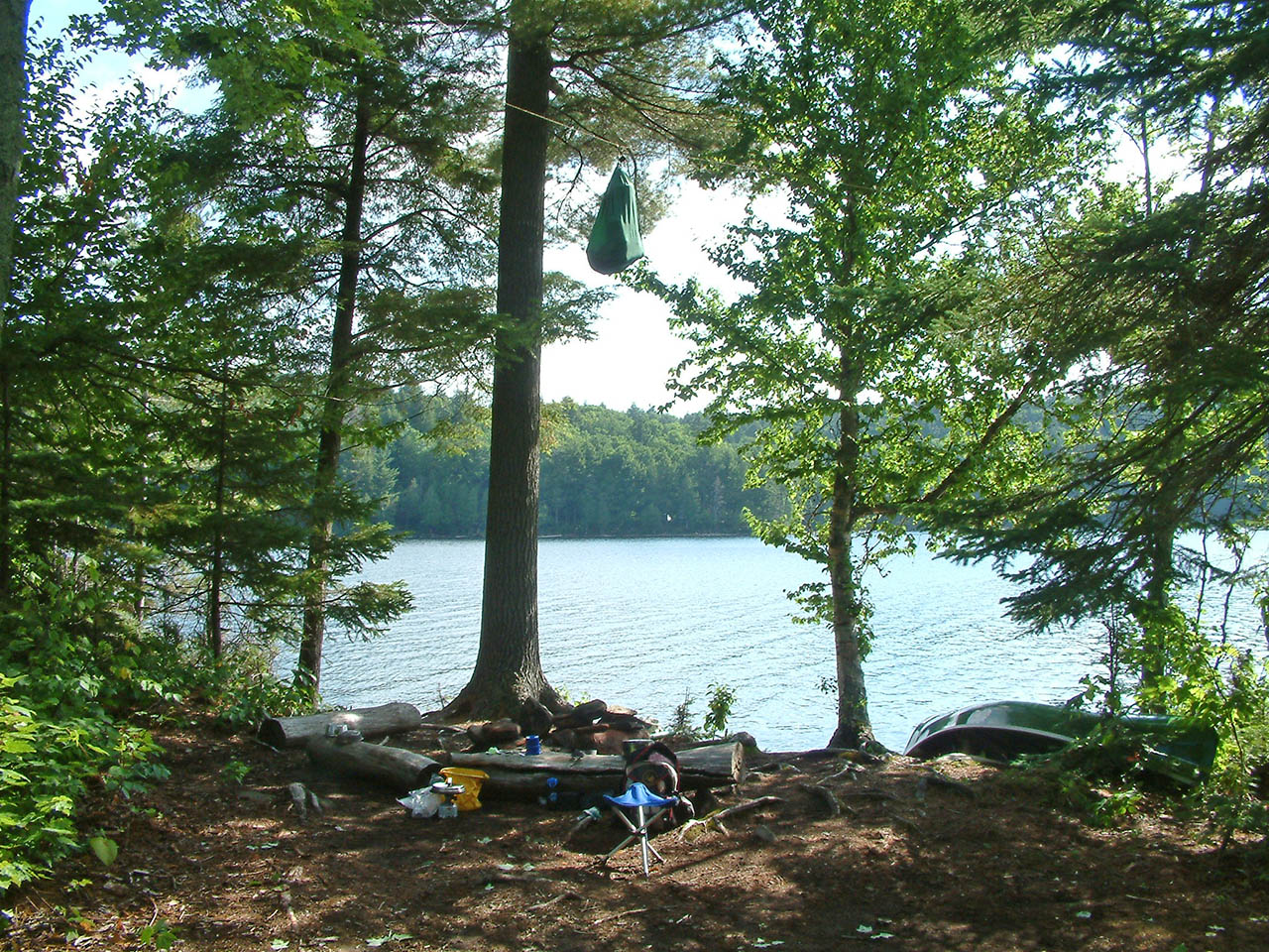 This PCI record is comprised of photos taken by Barry Bridgeford in 2005 (during July high water) and by Wanda Spruyt in 2019 (during late September low water). While the earlier photos are potentially outdated, they do illustrate the impact of the passage of 14 years and the effect of lowered water levels. McCraney Lake has a run-off control dam at its outflow, which is capable of lowering levels in preparation of storing spring run-off water volumes. Landing Topography of under-water approach: South part of waterfront is a large sloped rock. North part of waterfront is comprised of numerous irregular rocks. Impediments to disembarking from and/or unloading a canoe: Steep slope requires special care. Topography to tent sites: Once the rock slope has been climbed, the campsite is generally flat except for pronounced tree roots criss-crossing a large part of it. Campsite seen from the water in 2005 (photo by Barry) ... Sloped rock landing during high water in 2005 (photo by Barry) ... Same sloped rock landing during low water in 2019 (photo by Wanda) ... Campsite Campsite maintenance: Regular. Size of open area: Approx. 40ft x 40ft. Degree of levelness: Bumpy network of tree roots over 1/3 south and west of the firepit. Otherwise level. Number of level tent sites: 2. North exposure: Trees. East exposure: Lake. South exposure: Shoreline and trees. West exposure: Small trees and a buggy bay to the northwest. General description: A small campsite without the benefit of a point, afternoon sun or sunset view. Overall accessibility: Not ideal. One of the tentsites is at the rear, 2005 (photo by Barry) ... Over fourteen years, the soil has compacted and the roots are 'worse' (photo by Wanda) ... There's room for a second tentsite closer to the firepit (photo by Wanda) ... This is the view of the lake from behind the firepit, 2005 (photo by Barry) ... Looking across the firepit to the northeast, 2019 (photo by Wanda) ... Down on the low-water beach, looking north, 2019 (photo by Wanda) ... ![]() Thanks to Jeffrey McMurtrie of Jeff'sMap for supplying the base-layer map component by Creative Commons licensing. Joint report courtesy of Wanda Spruyt and Barry Bridgeford .. Visited 2005 and 2019 .. Submission Dec. 4th, 2019 |