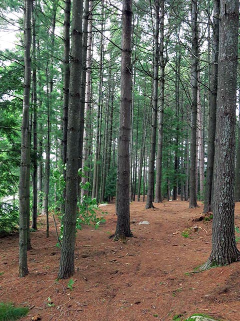 Campsite Campsite maintenance: Regular Open ground area: 30 x 30 feet. Extent of tree cover: 100% . Degree of levelness: Rolling. Number of tent sites: Many. North exposure: Open pines. East exposure: Pines. South exposure: Open pines. West exposure: Open to firepit, seating and lake. Overall accessibility: 4 foot quick rise from landing.
