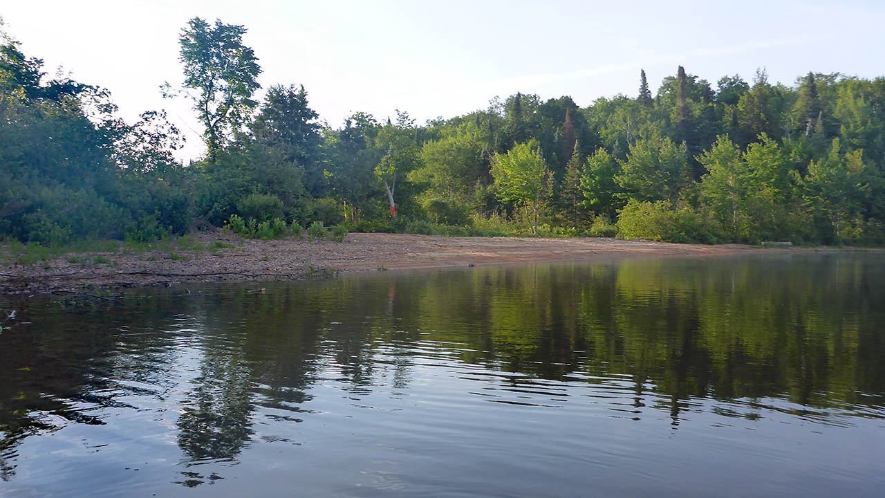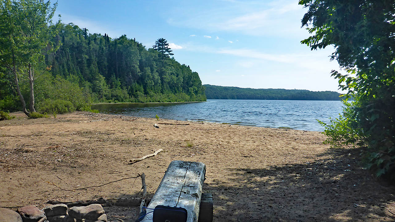 Landing Topography of under-water approach: Shallow water, sand and gravel beach. Impediments to disembarking from and/or unloading a canoe: None. Topography leading to tent sites: Short walk on sand and fine gravel.