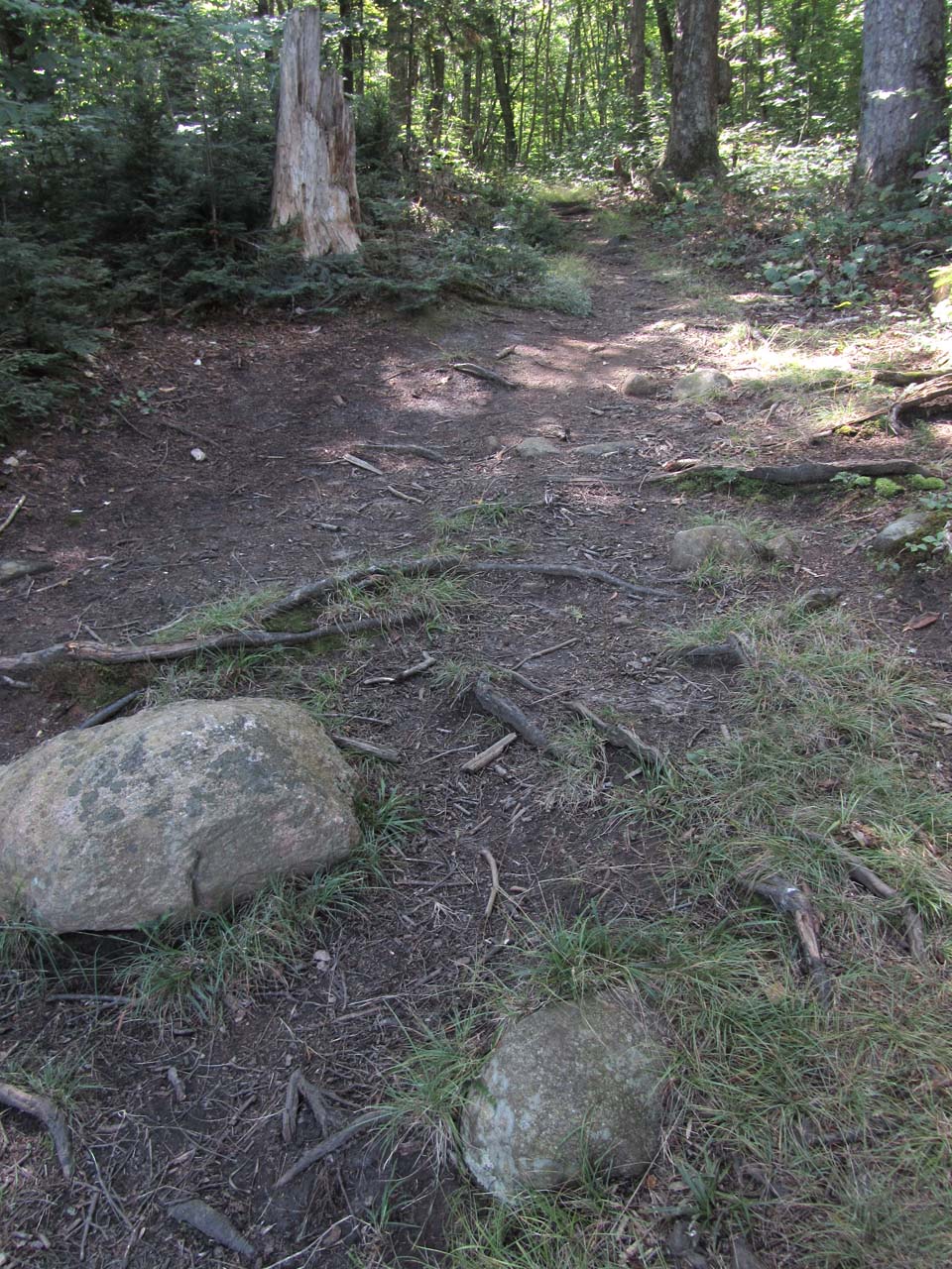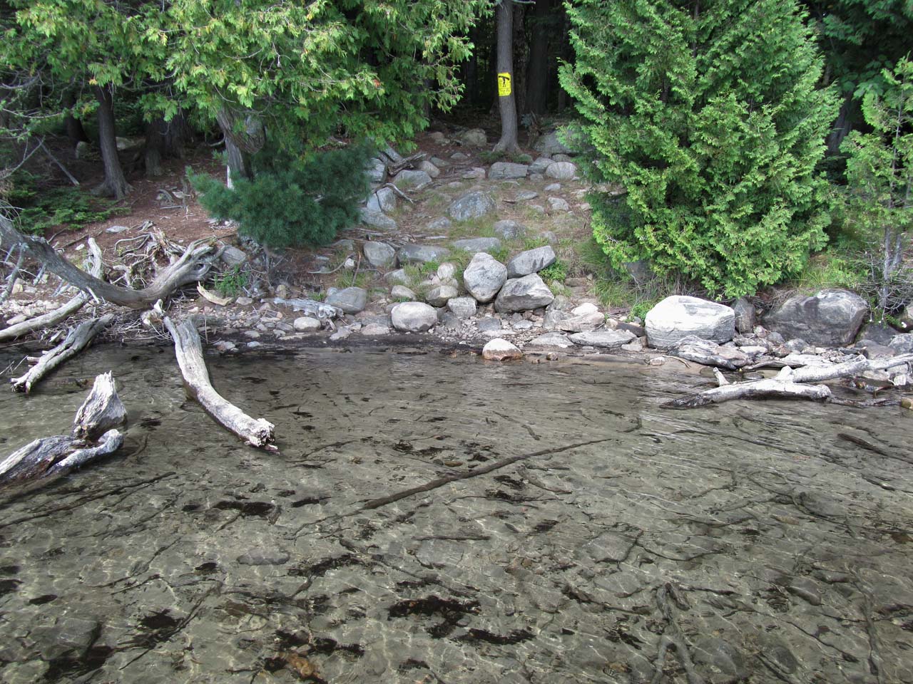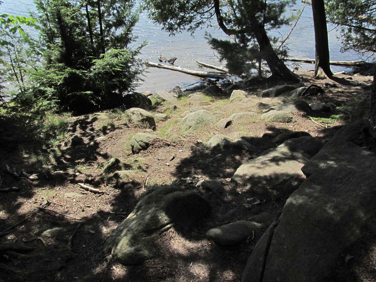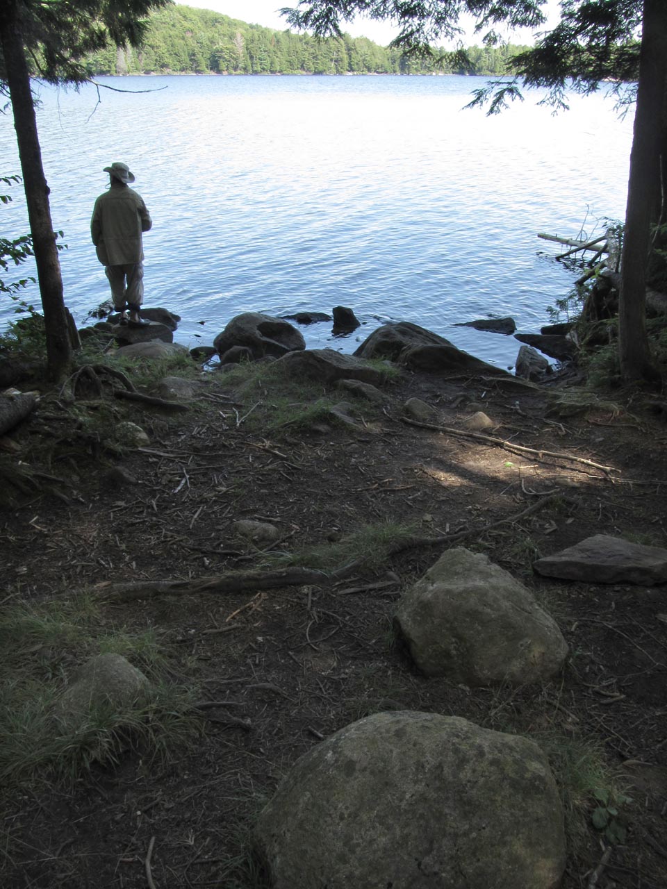 Length of portage: 620m Portage maintenance regular or low: Regular. Elevation above Sea Level @ Ralph Bice Lake is 444 meters. Elevation above Sea Level @ David Lake is 457 meters. Difference in elevation: 13 meters. Elevation of highest point: 467 meters. Overall rise/fall: 23 meters. Landing at Ralph Bice Lake Topography of under-water approach: Smooth sand. Impediments to disembarking from and/or unloading a canoe: None. Topography of the ascending grade: Rocky 45 degree slope. Impediments to moving gear to portage trail: Slope leading to actual portage trail has numerous large rocks. This landing (with an impeded rise to the trail) is a few meters west of the better 'official' one (photo: Marko Mrkobrada) ...![]() ![]() ![]() General description: It has rough rocky sections along its length and noticeable ups-and-downs. Topographical impediments to travelling: None of the rises are impediments. However, one should constantly be checking one's footing. Areas susceptible to impact by periods of rain or beaver flooding: None. Section of the portage near Ralph Bice Lake ...![]() ![]() Landing at Ryan Lake Topography of under-water approach: The actual landing is a shallow dirt and gravel beach area. A few feet further out is somewhat mucky with some small sunken deadwood. Note that when heading out into the main part of Ryan Lake, one has to first paddle across a small inlet or bay. Impediments to disembarking from and/or unloading a canoe: None Topography of the ascending grade: There's a small rise up to root and dirt level area. If water levels are high, the access could be directly to the rise itself. Impediments to moving gear to portage trail: None. there's ample room ashore, to haul canoes and gear aside and out of the way. Slight but very rocky slope to the landing at David Lake ...![]() ![]() ![]() ![]() Thanks to Jeffrey McMurtrie of Jeff'sMap for supplying the base-layer map component by Creative Commons licensing. Submitted by Barry Bridgeford, visited August 2012, submitted August 2013 |