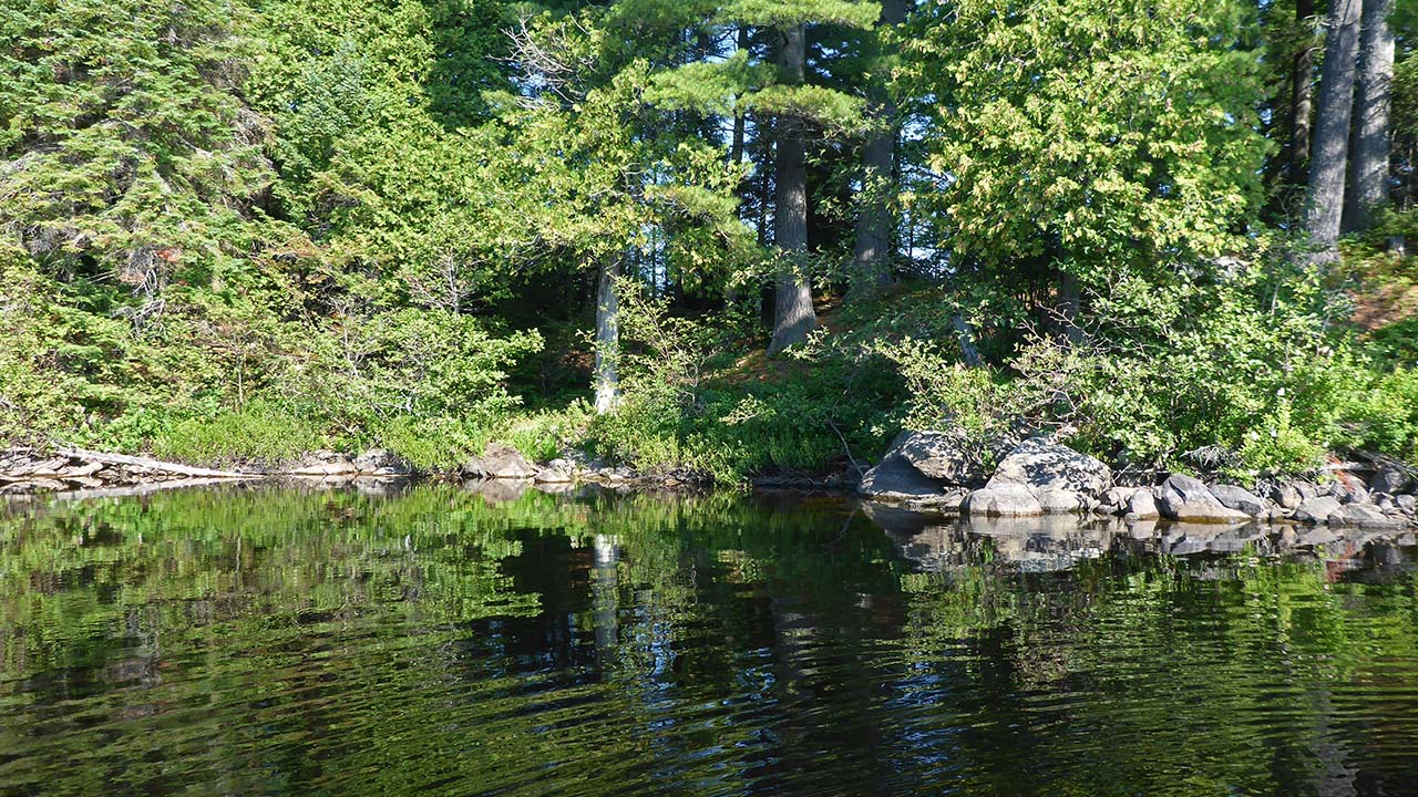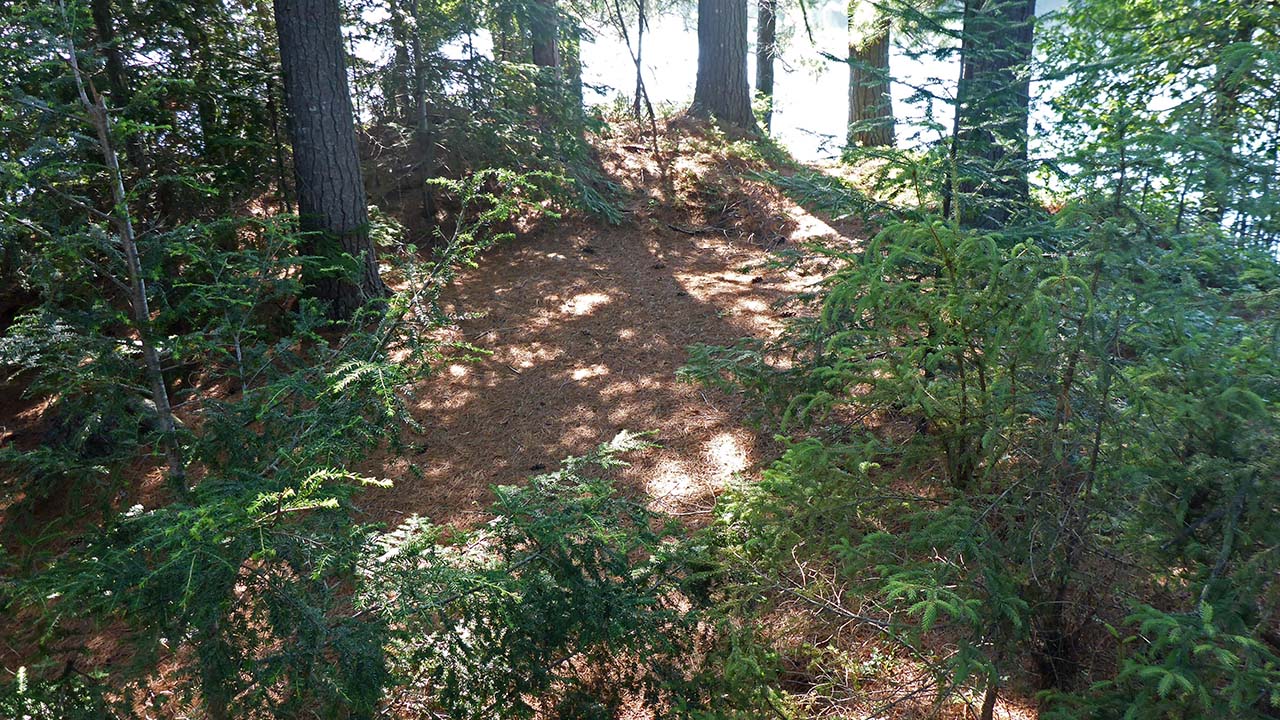 Campsite Location GPS - UTM location (optional): N45° 49.664' W78° 39.646' Landing Topography of under-water approach: Steep climb up 4m on a 10m path. Impediments to disembarking from and/or unloading a canoe: Some bushes and rocks at landing area. Topography leading to tent sites: Steep climb up 4m on a 10m path.