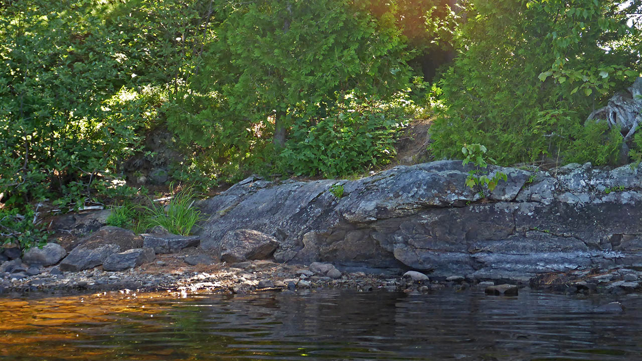 Campsite Location GPS - UTM location (optional): N45° 49.853' W78° 38.662' Landing Topography of under-water approach: Small and medium sized rock. Impediments to disembarking from and/or unloading a canoe: None. Topography leading to tent sites: A short 1m climb on to the actual campsite.
