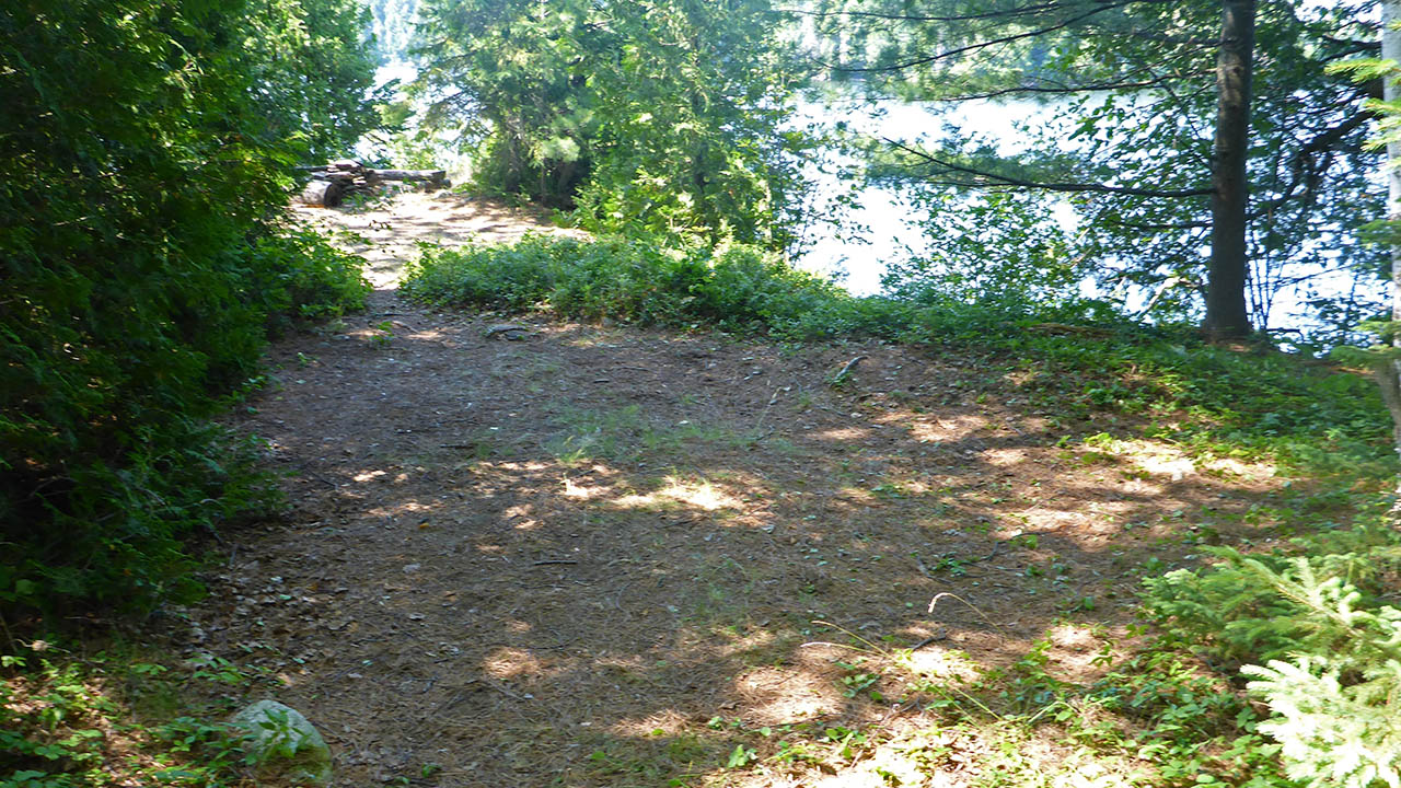 Campsite Regular or low-maintenance: Regular Size of open ground area: 5m x 4m and 3m x 3m. Extent of tree cover: 10% at the front, 80% at the rear tentpad. Degree of levelness: Level. Number of tent sites: 2 tent sites. North exposure: Trees. East exposure: Trees. South exposure: View of lake. West exposure: View of lake.