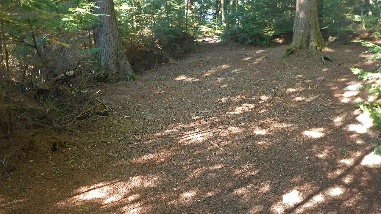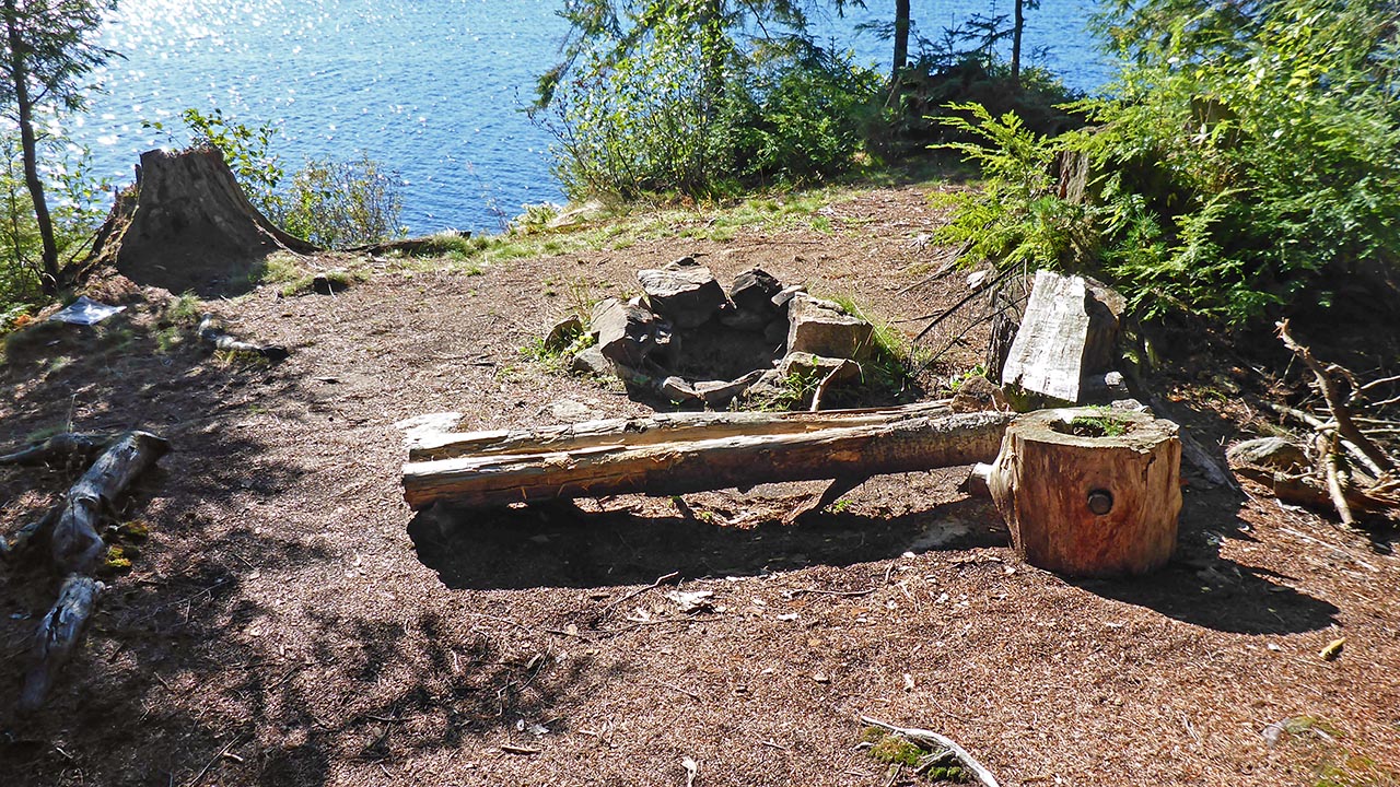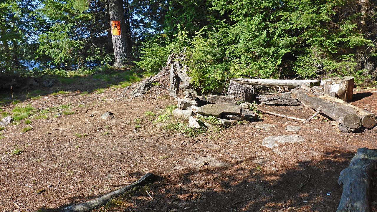 Campsite Regular or low-maintenance: Poorly maintained. Size of open ground area: Very small, 5m x 5m. Extent of tree cover: Covers most of island. Degree of levelness: Reasonable. Number of tent sites: 2. Tent sites well sheltered from all sides.
